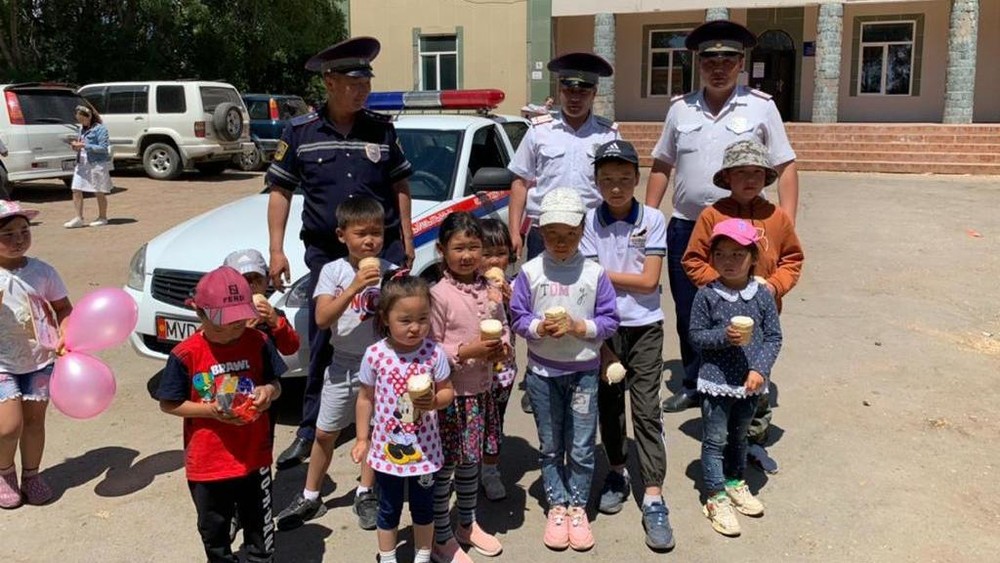 Ысык-Көлдө жол күзөтчүлөр балдарга эрежелерди түшүндүрүп жатышат