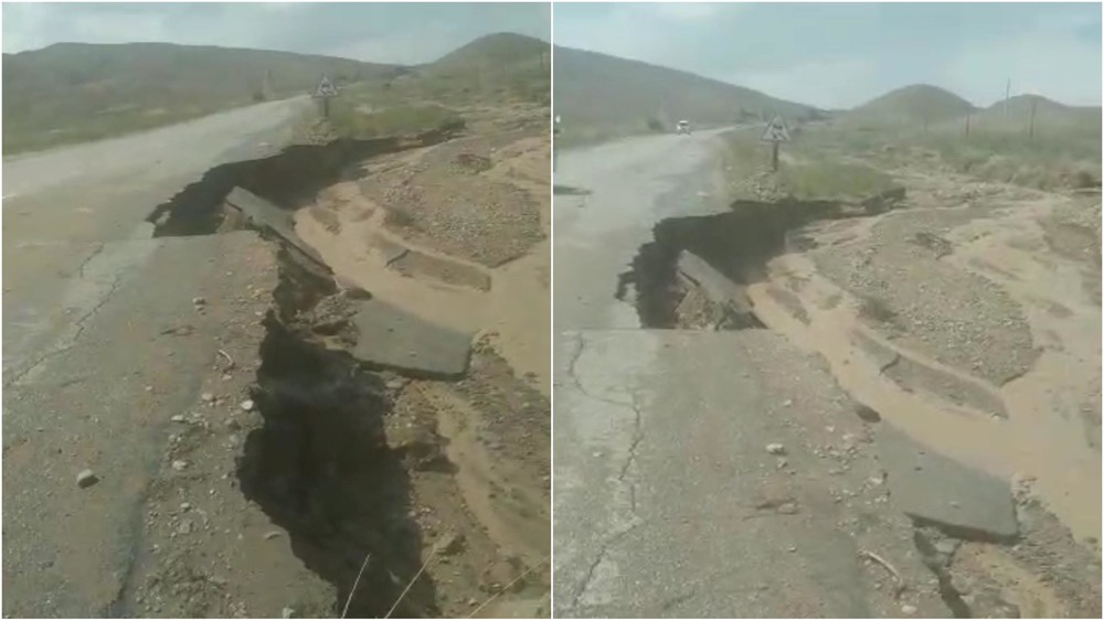 Тоңдо катуу жамгыр жаап, жолду кыян жеп кетти (видео)