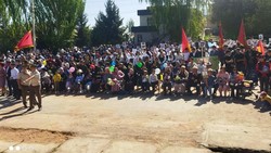 Фото — На улицы села Боконбаево вышли 150 женщин в элечеках